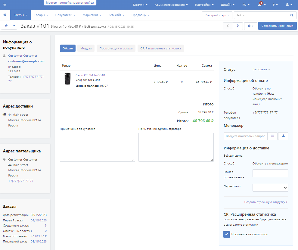 Вы можете самостоятельно исключать из статистики заказы, созданные вручную администратором или загруженные из 1С. Такие заказы не имеют просмотров и искажают показатели конверсии.