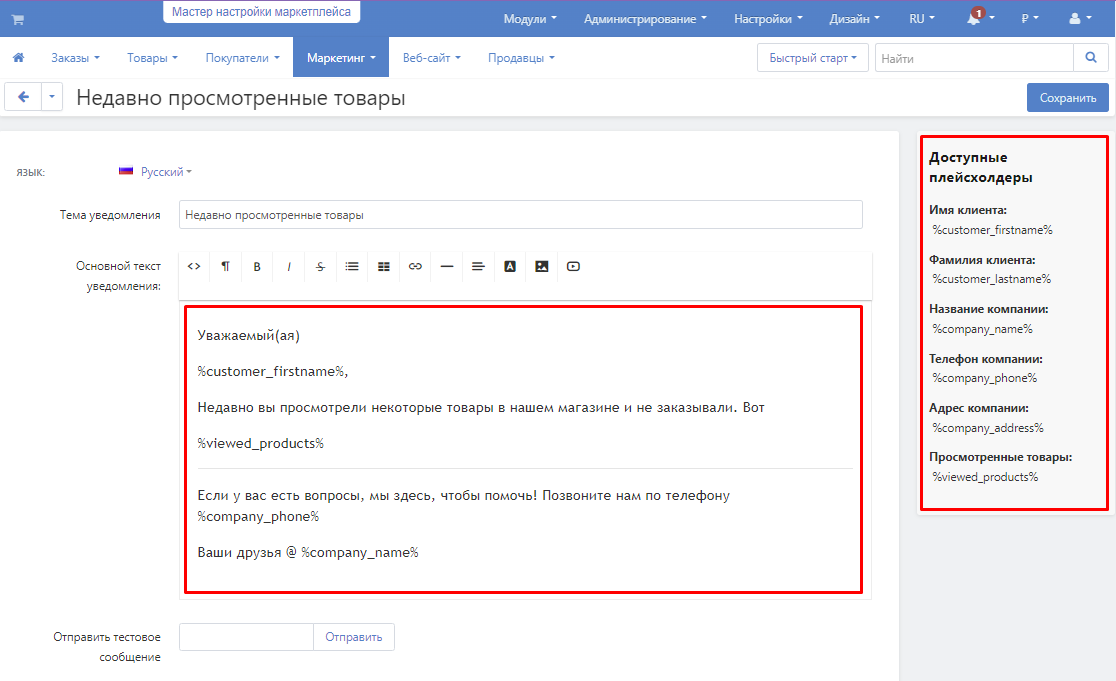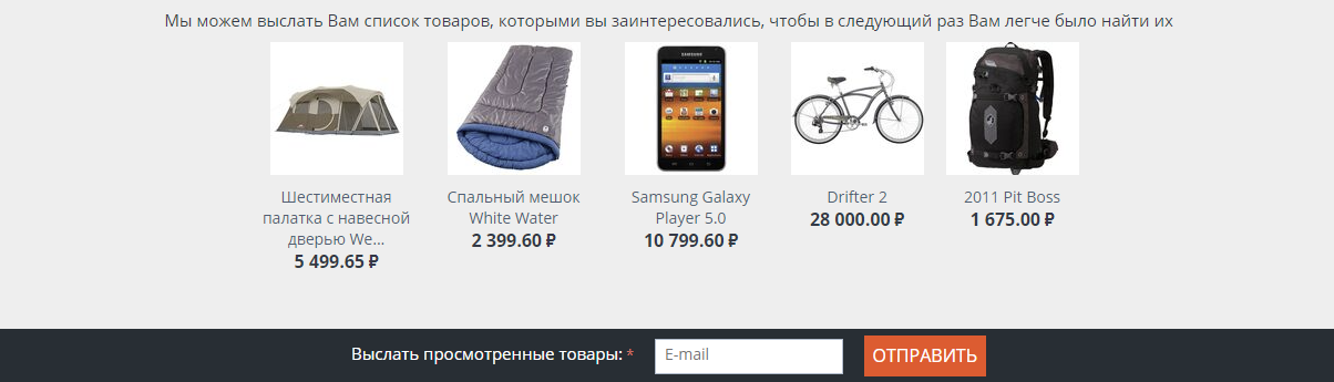 Кроме того, клиент может отправить список просмотренных товаров себе на почту буквально в 2 клика, чтобы потом продолжить покупки. Шаблон письма редактируется и поддерживает плейсхолдеры.